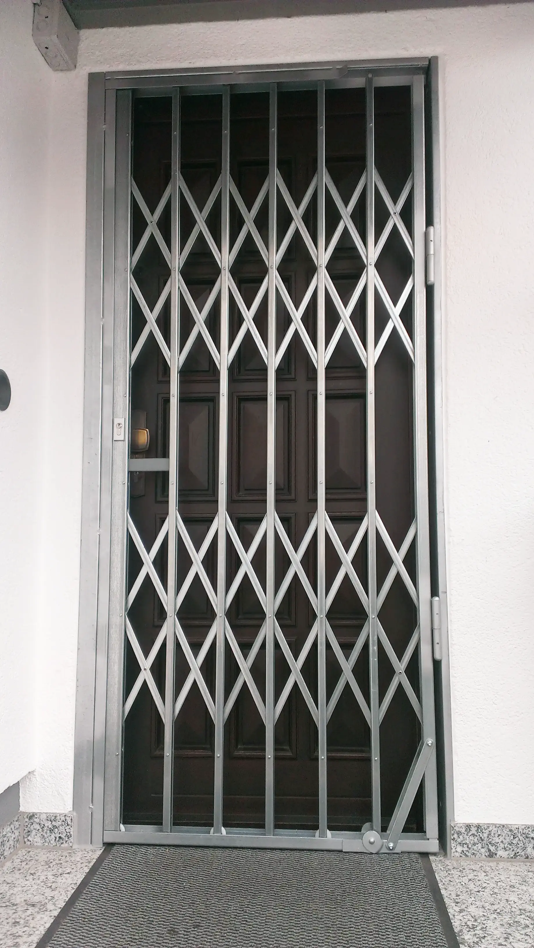 Ein Scherengitter ist ein ausziehbares Sicherheitsgitter aus Metall, das sich wie eine Schere zusammen- und auseinanderfalten lässt. Es wird an Türen, Fenstern oder Durchgängen montiert und schützt zuverlässig vor unbefugtem Zutritt oder Einbruch. Scherengitter sind besonders platzsparend und bieten eine dezente Möglichkeit, Objekte im geöffneten Zustand sichtbar zu belassen (z. B. bei Schaufenstern).